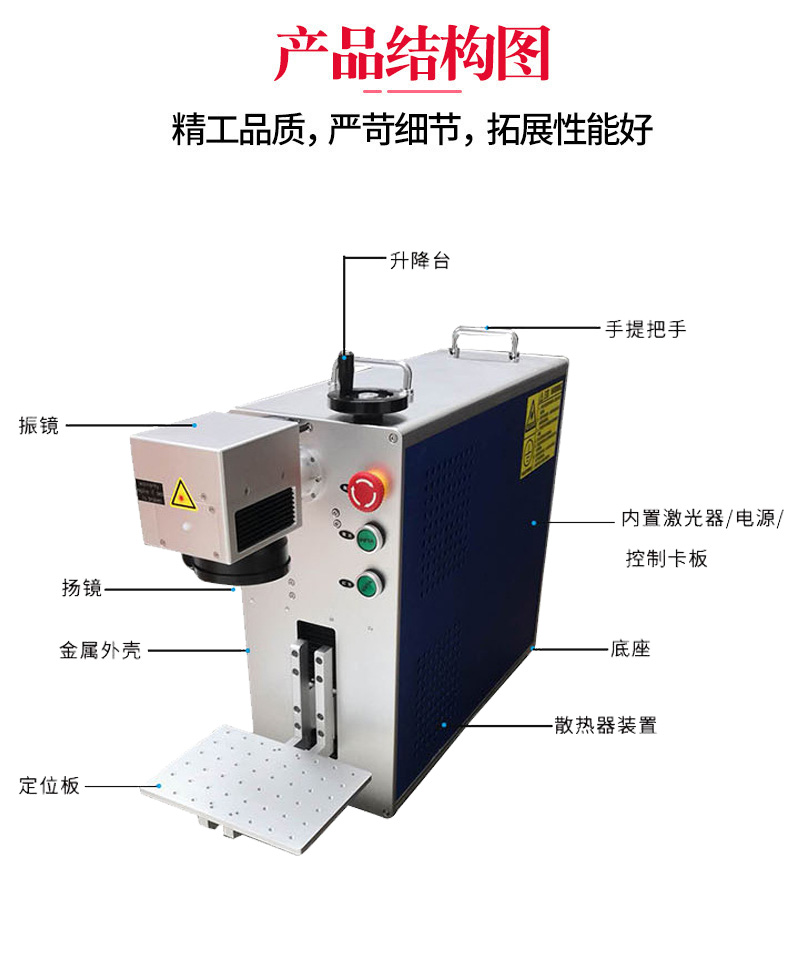 2、打標字符清晰、精細,且耗能低。便攜式光纖激光打標機作用于材料,加工出來的產(chǎn)品圖案形象逼真、清晰,易于為市場接受。
